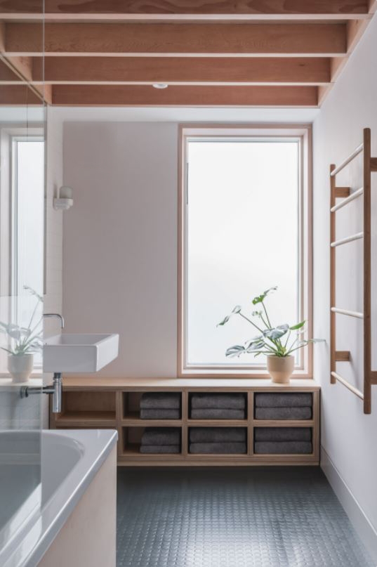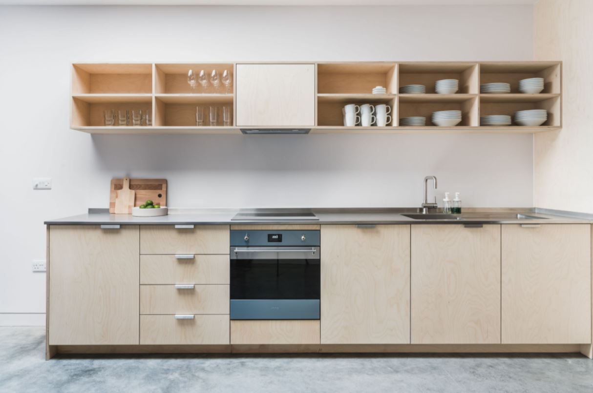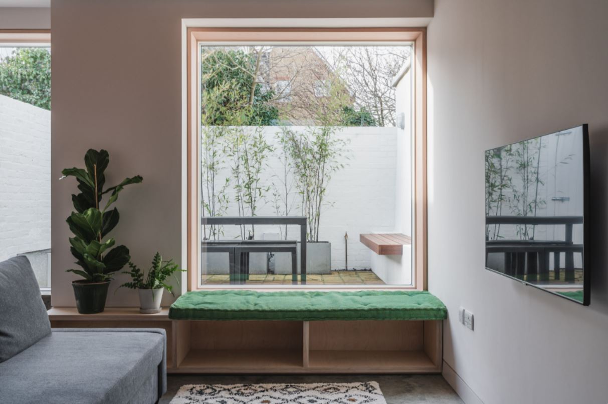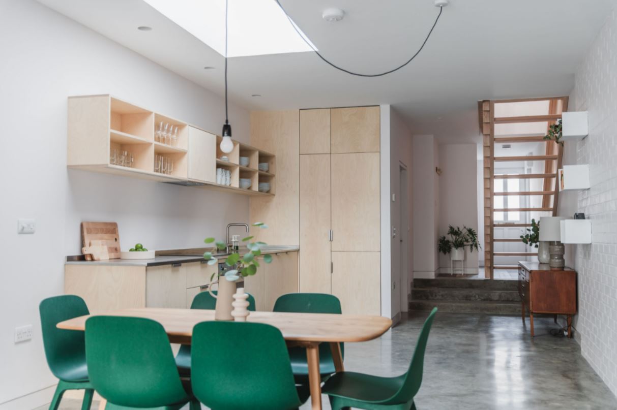 Internally, polished concrete, white plasterboard, birch ply and douglas fir are honestly layered to enhance the architecture. The warm and contemporary environment, studied in every detail, is flooded with natural daylight thanks to the large apertures and the frameless skylight at ground floor.