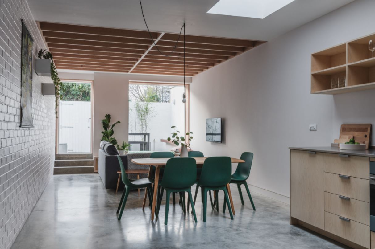 Located in the charming seaside town of Deal, the brief was to redevelop an unassuming terrace house on the outskirts of the conservation area, maximising the floor to ceiling heights. Retaining the existing street facade and the roof, the proposed design rethinks the internal living spaces extending out to the rear with a contemporary two storey extension sunken half meter from the entrance level.